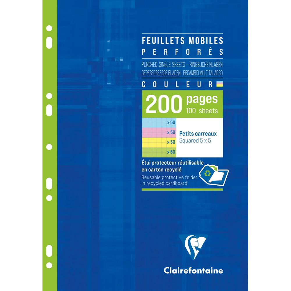Optez pour les feuillets mobiles de couleur sous étui A4 200 pages perforées petits carreaux - Assortis de la marque Clairefontaine pour satisfaire tous vos besoins en matière de fournitures de bureau. Ces feuillets mobiles sont d'excellente qualité et offrent une sensation de glisse unique grâce au papier Vélin Velouté 90 g de Clairefontaine, fabriqué dans l'usine historique située dans les Vosges.