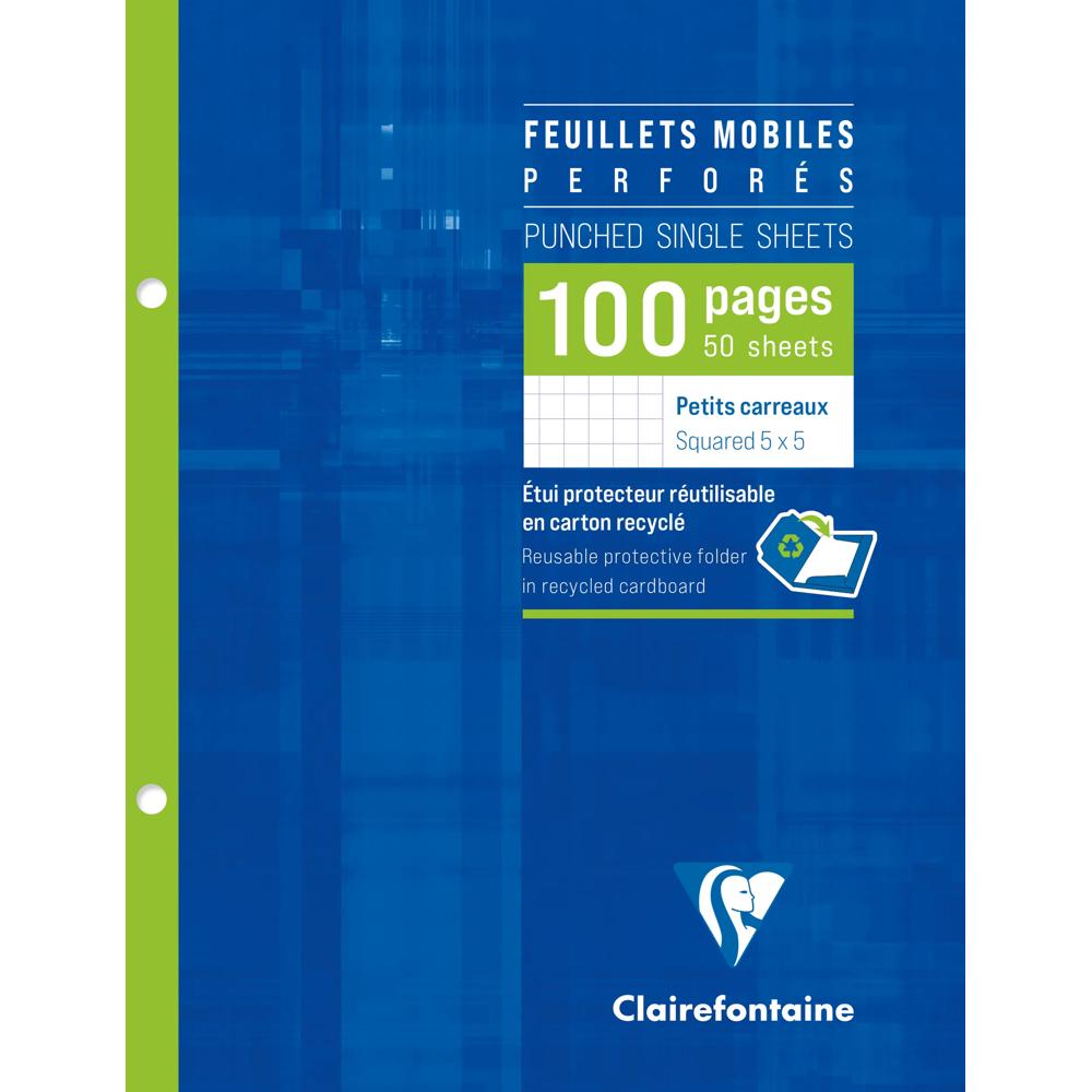 Ces feuillets mobiles, quadrillés en 5 x 5, sont pré-perforés avec 2 trous à 103 mm pour une intégration facile dans un classeur. Ils sont également accompagnés d'un étui protecteur en carton recyclé et réutilisable, assurant la propreté et la durabilité de vos documents.