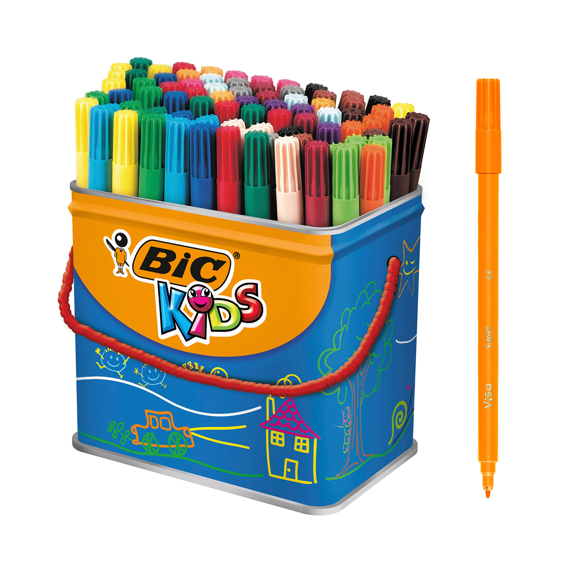 En avant les beaux dessins ! Les 18 couleurs des feutres fins BIC Kids Visa sont vives et chatoyantes. La pointe de ces 84 feutres est fine, idéal pour des dessins détaillés et les coloriages dans les plus petits recoins dès 5 ans. Leur encre à base d'eau est lavable sur la plupart des tissus. Ils ne sèchent pas, même décapuchonnés 3 mois (sauf l'encre noire).