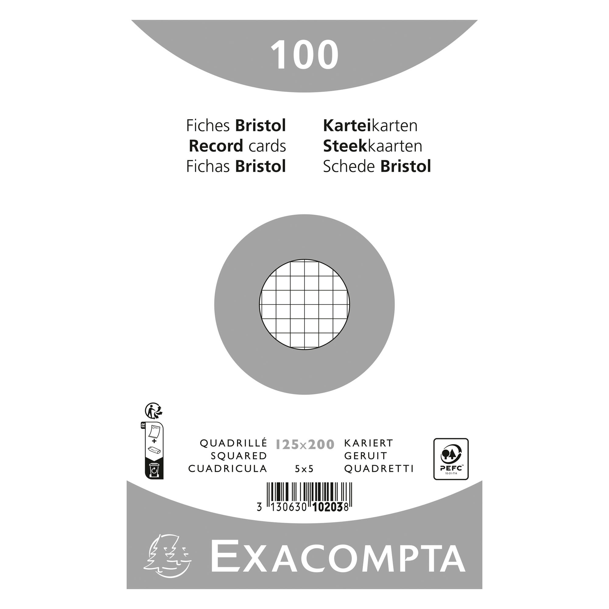 Paquet 100 fiches sous film - bristol quadrillé 5 x 5 non perforé 125 x 200 mm.