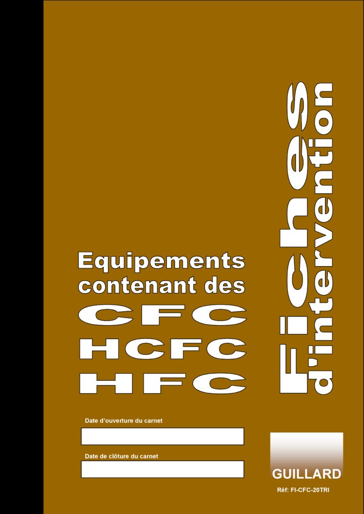 Les fiches d'intervention sont au format A4 et présentent 20 triplicatas autocopiants pour une utilisation simplifiée. Elles répondent aux exigences de l'arrêté du 29 février 2016, qui stipule que la fiche d'intervention doit mentionner les coordonnées de l'opérateur, son numéro d'attestation de capacité, la date et la nature de l'intervention effectuée, la nature, la quantité et l'installation de destination du fluide récupéré, ainsi que la quantité de fluide éventuellement réintroduite dans l'équipement.