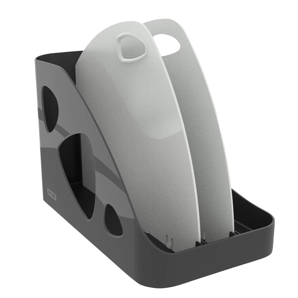 Ce produit a été dessiné et pensé pour entrer dans tous les casiers standards. Son design élégant, épuré et travaillé permet de le laisser sur son espace de travail pendant la journée et s'en servir de trieur vertical de documents. Sa poignée est solide et ergonomique.