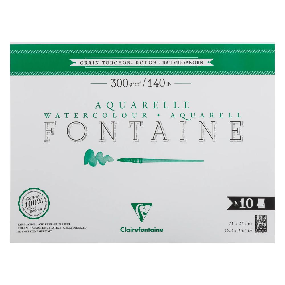 Explorez les possibilités artistiques offertes par la Fontaine bloc collé 1 côté 10F 31x41cm 300g grain torchon - Vert, un produit de qualité professionnelle signé Clairefontaine. Ce papier aquarelle 100% coton présente un grain torchon aux reliefs accentués, idéal pour mettre en valeur vos créations et expérimenter différentes techniques.