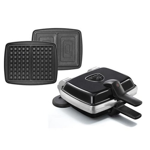 Description détailléeGaufrier réversible sur socle, 2 gaufres - 2 croque-monsieur, Puissance 1000 Watts - Plaques massives en fonte d’aluminium, Thermostat de sécurité et voyant de contrôle