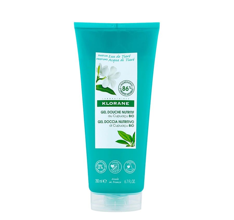 Offrez à votre peau une pause douceur et évasion tropicale avec le gel douche à l’eau de Tiaré de Klorane.