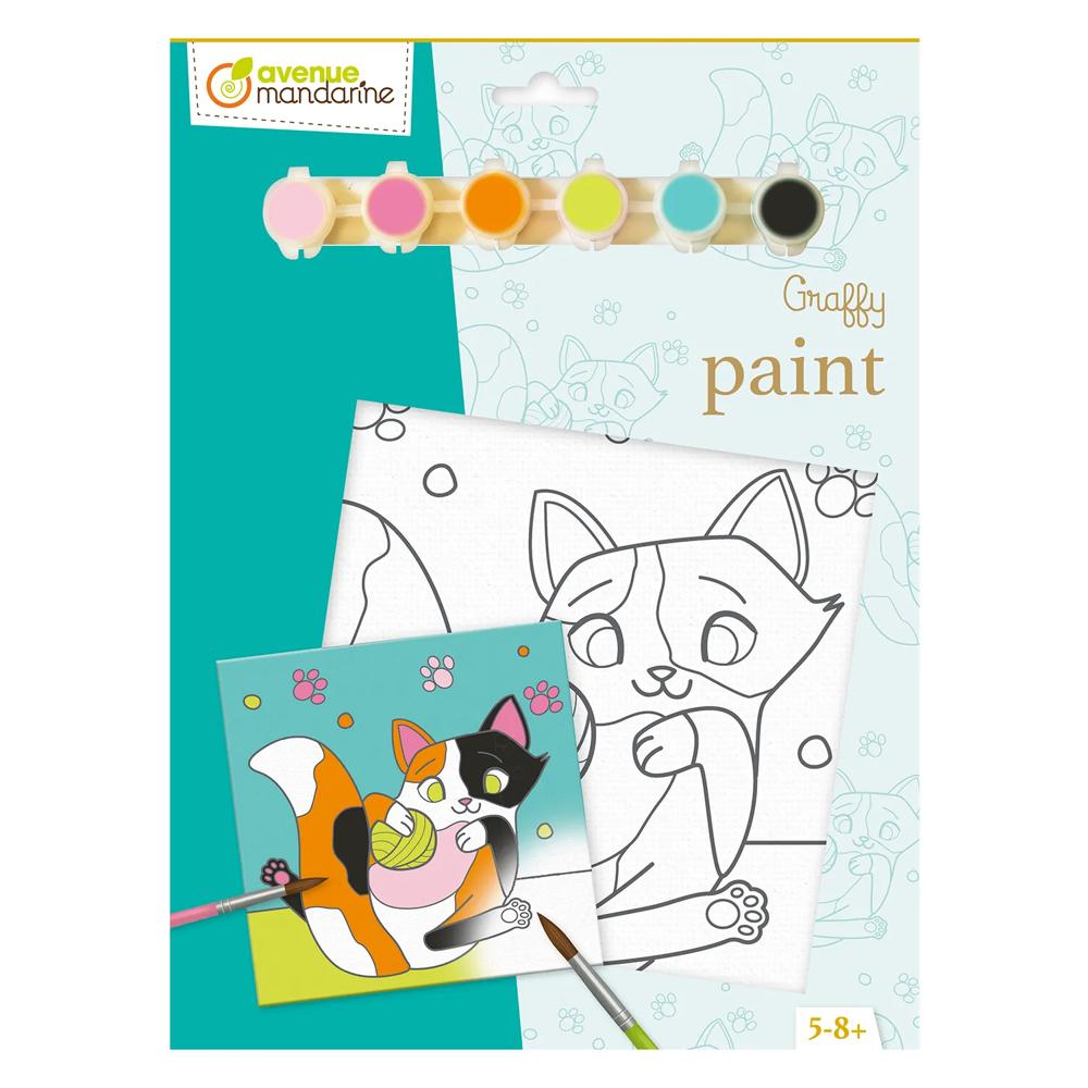 Peinture pinceau, carton entoilé pré-dessiné, le tout en un à offrir à tous les petits artistes entre 5 et 8 ans ! Léger et facilement transportable, découvrez ce set à peindre Graffy paint !