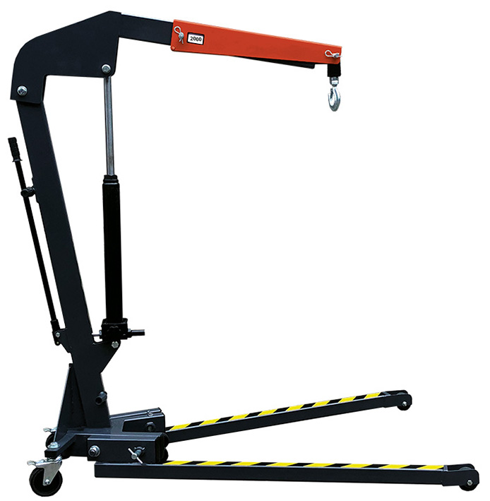 Grue d'atelier manuelle pliable. Optimisez vos opérations de levage avec notre grue d'atelier manuelle pliable. Conçue pour répondre aux exigences variées de votre entreprise, elle offre une capacité de levage allant de 500 kg à 2 tonnes. Cet équipement est non seulement robuste et compact, mais son bras télescopique réglable et son levage hydraulique assurent une efficacité maximale. Dotée d'une pompe à levée rapide double action et d'un système de sécurité "homme mort", cette grue garantit un usage sécurisé et productif. Idéale pour les environnements B2B, sa maniabilité est renforcée par six roues pivotantes et un crochet pivotant à 360°, facilitant ainsi son utilisation dans des espaces restreints. Après utilisation, elle se replie facilement pour un rangement pratique.