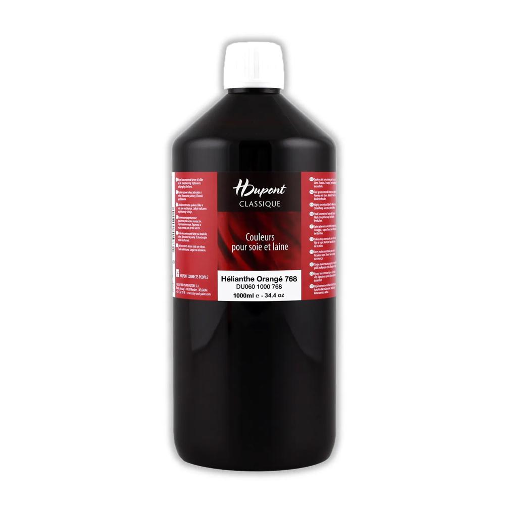 PEINTURE SUR SOIE : H Dupont est une marque de peinture sur soie. Composée de 85 couleurs brillantes et déclinée en 3 formats (125ml, 250ml, 1000ml). Les peintures sont miscibles entre elles pour permettre des possibilités de déclinaisons infinies. FIXATION VAPEUR : nécessite une fixation à l'étuve (procédé de fixation à la vapeur). La vapeur permet à la peinture de pénétrer à l'intérieur des fibres de la soie. Après fixation, la soie peut être lavée sans crainte de détérioration des couleurs. FIBRES ANIMALES : Les peintures H Dupont sont utilisées sur les fibres animales (soie, laine.). Les peintures sont lumineuses et d'une qualité supérieure. Principalement utilisées sur la soie, elles permettent de créer des réalisations uniques ! QUALITÉ SUPÉRIEURE : Couleurs à base de colorants acides. La forte concentration permet d'utiliser les couleurs pures ou diluées. Elles peuvent être utilisées en peinture ou teinture et ne laissent aucune porosité sur la soie après fixation. PREMIUM : H Dupont est une marque haut de gamme de peintures et auxiliaires pour soie. Utilisée par de nombreux professionnels de la soie. Découvrez l'entiereté de la gamme et initiez vous à la pratique créative et apaisante de la peinture sur soie.
