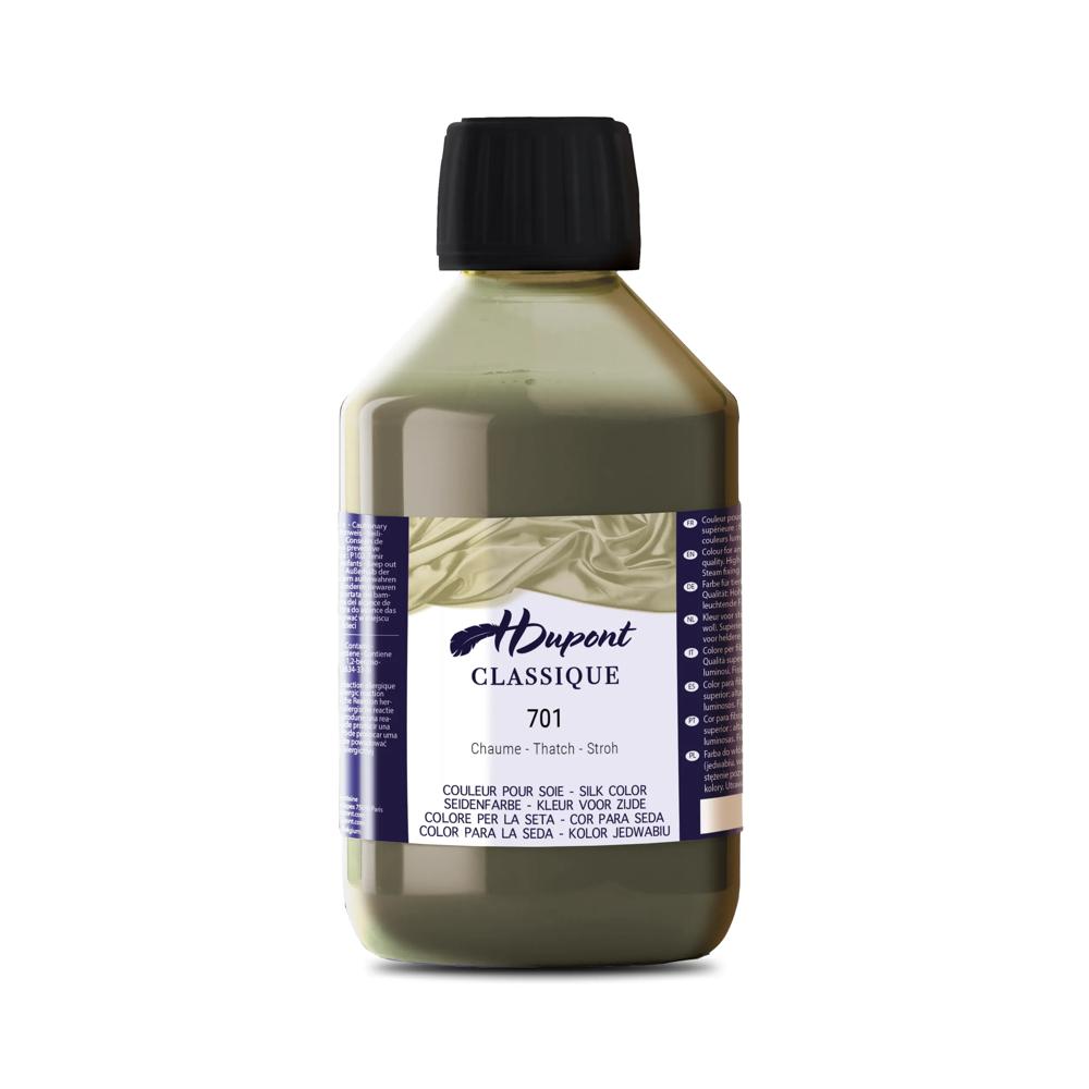 PEINTURE SUR SOIE : H Dupont est une marque de peinture sur soie. Composée de 85 couleurs brillantes et déclinée en 3 formats (125ml, 250ml, 1000ml). Les peintures sont miscibles entre elles pour permettre des possibilités de déclinaisons infinies. FIXATION VAPEUR : nécessite une fixation à l'étuve (procédé de fixation à la vapeur). La vapeur permet à la peinture de pénétrer à l'intérieur des fibres de la soie. Après fixation, la soie peut être lavée sans crainte de détérioration des couleurs. FIBRES ANIMALES : Les peintures H Dupont sont utilisées sur les fibres animales (soie, laine.). Les peintures sont lumineuses et d'une qualité supérieure. Principalement utilisées sur la soie, elles permettent de créer des réalisations uniques ! QUALITÉ SUPÉRIEURE : Couleurs à base de colorants acides. La forte concentration permet d'utiliser les couleurs pures ou diluées. Elles peuvent être utilisées en peinture ou teinture et ne laissent aucune porosité sur la soie après fixation. PREMIUM : H Dupont est une marque haut de gamme de peintures et auxiliaires pour soie. Utilisée par de nombreux professionnels de la soie. Découvrez l'entiereté de la gamme et initiez vous à la pratique créative et apaisante de la peinture sur soie.