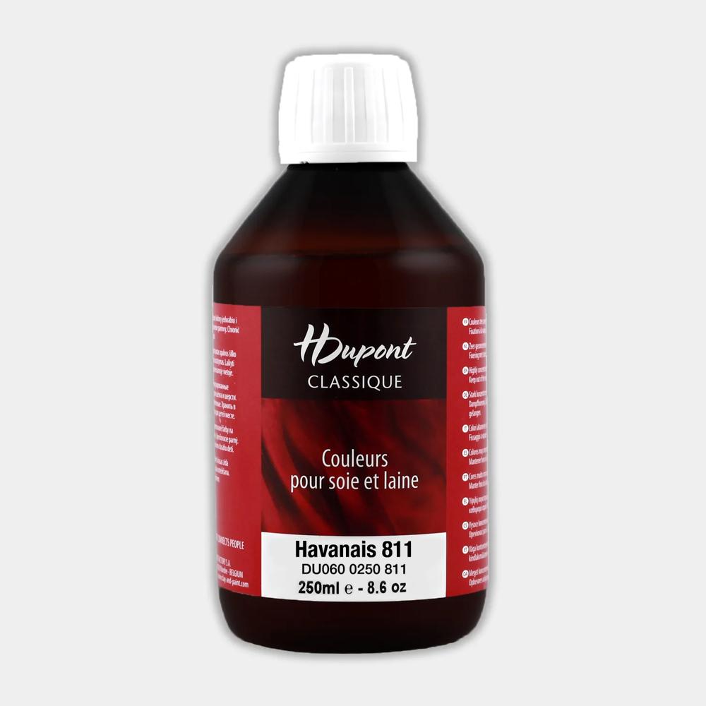 PEINTURE SUR SOIE : H Dupont est une marque de peinture sur soie. Composée de 85 couleurs brillantes et déclinée en 3 formats (125ml, 250ml, 1000ml). Les peintures sont miscibles entre elles pour permettre des possibilités de déclinaisons infinies. FIXATION VAPEUR : nécessite une fixation à l'étuve (procédé de fixation à la vapeur). La vapeur permet à la peinture de pénétrer à l'intérieur des fibres de la soie. Après fixation, la soie peut être lavée sans crainte de détérioration des couleurs. FIBRES ANIMALES : Les peintures H Dupont sont utilisées sur les fibres animales (soie, laine.). Les peintures sont lumineuses et d'une qualité supérieure. Principalement utilisées sur la soie, elles permettent de créer des réalisations uniques ! QUALITÉ SUPÉRIEURE : Couleurs à base de colorants acides. La forte concentration permet d'utiliser les couleurs pures ou diluées. Elles peuvent être utilisées en peinture ou teinture et ne laissent aucune porosité sur la soie après fixation. PREMIUM : H Dupont est une marque haut de gamme de peintures et auxiliaires pour soie. Utilisée par de nombreux professionnels de la soie. Découvrez l'entiereté de la gamme et initiez vous à la pratique créative et apaisante de la peinture sur soie.