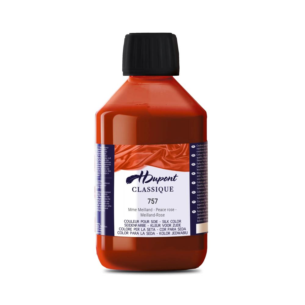 PEINTURE SUR SOIE : H Dupont est une marque de peinture sur soie. Composée de 85 couleurs brillantes et déclinée en 3 formats (125ml, 250ml, 1000ml). Les peintures sont miscibles entre elles pour permettre des possibilités de déclinaisons infinies. FIXATION VAPEUR : nécessite une fixation à l'étuve (procédé de fixation à la vapeur). La vapeur permet à la peinture de pénétrer à l'intérieur des fibres de la soie. Après fixation, la soie peut être lavée sans crainte de détérioration des couleurs. FIBRES ANIMALES : Les peintures H Dupont sont utilisées sur les fibres animales (soie, laine.). Les peintures sont lumineuses et d'une qualité supérieure. Principalement utilisées sur la soie, elles permettent de créer des réalisations uniques ! QUALITÉ SUPÉRIEURE : Couleurs à base de colorants acides. La forte concentration permet d'utiliser les couleurs pures ou diluées. Elles peuvent être utilisées en peinture ou teinture et ne laissent aucune porosité sur la soie après fixation. PREMIUM : H Dupont est une marque haut de gamme de peintures et auxiliaires pour soie. Utilisée par de nombreux professionnels de la soie. Découvrez l'entiereté de la gamme et initiez vous à la pratique créative et apaisante de la peinture sur soie.