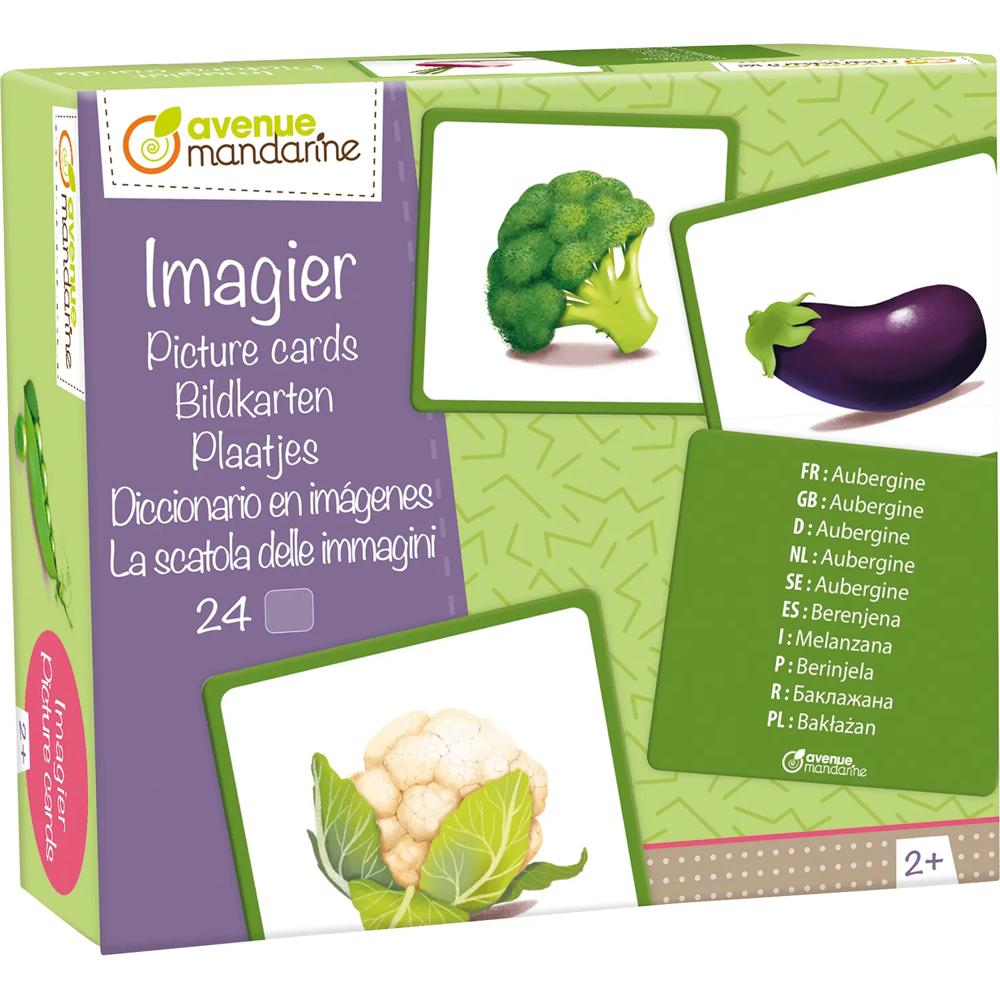 Très bel imagier composé de 24 images cartonnées magnifiquement illustrées. Sur une face : Le légume illustré. Au dos le nom du légume en 10 langues leur permettra de s'initier à la langue choisie avec l'aide d'un adulte.