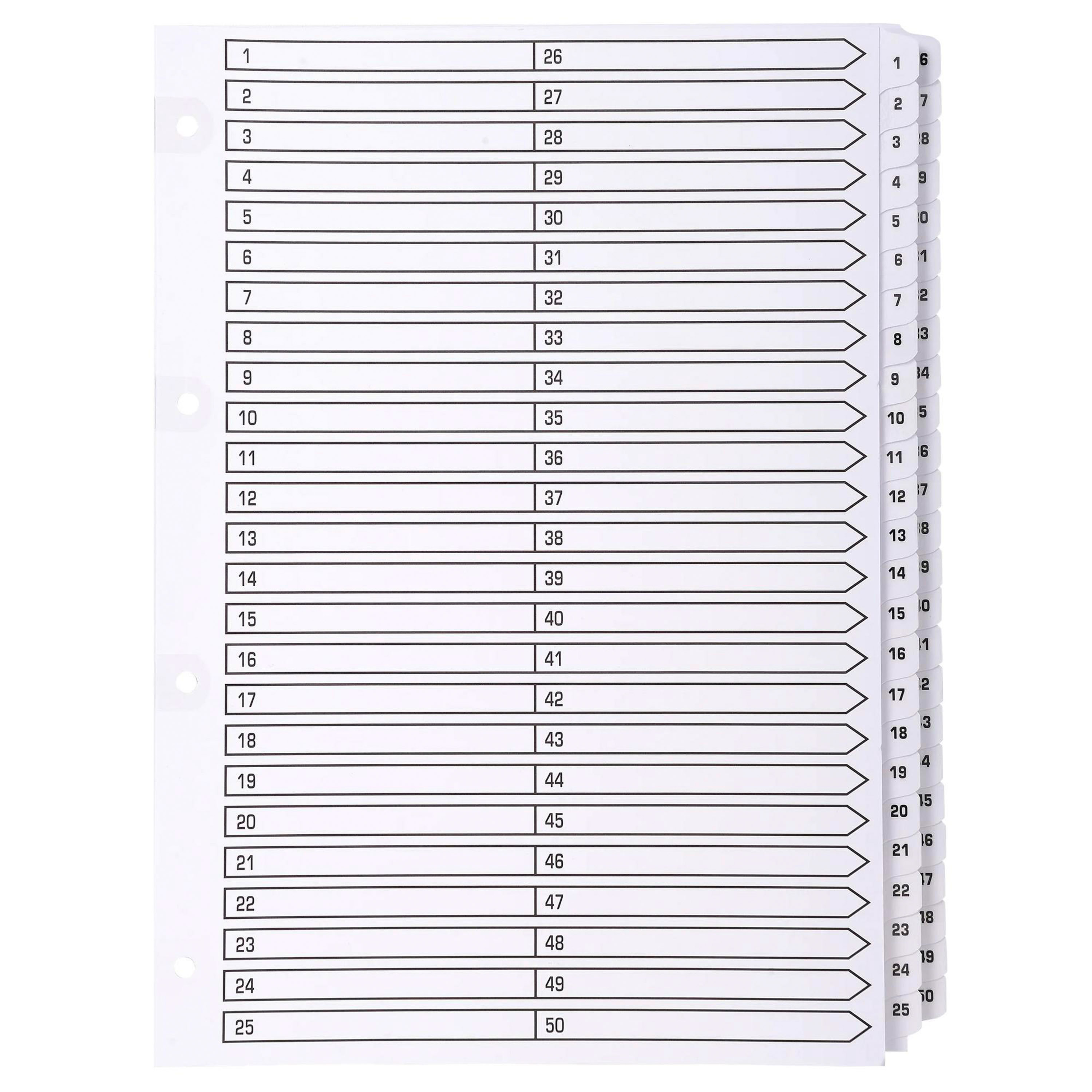 Ces intercalaires de format A4 (22,5 x 29,7 cm) sont fabriqués en France et disposent de 50 touches numérotées de 1 à 50, pour un classement efficace et rapide de vos dossiers.