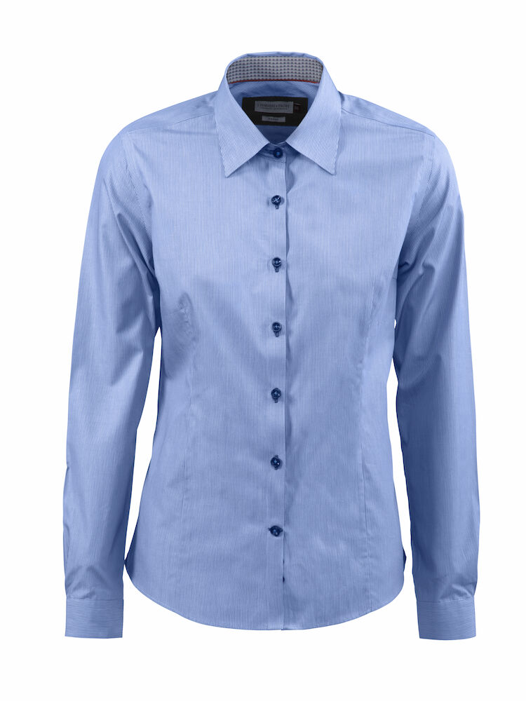 De fines rayures blanches sur une base bleue ou gris anthracite en font une version stylée de la classique chemise rayée. La chemise peut être parfaitement assortie à toutes nos couleurs et motifs, et est un excellent choix si vous sou-haitez ajouter quelques couleurs à votre garde-robe standard.