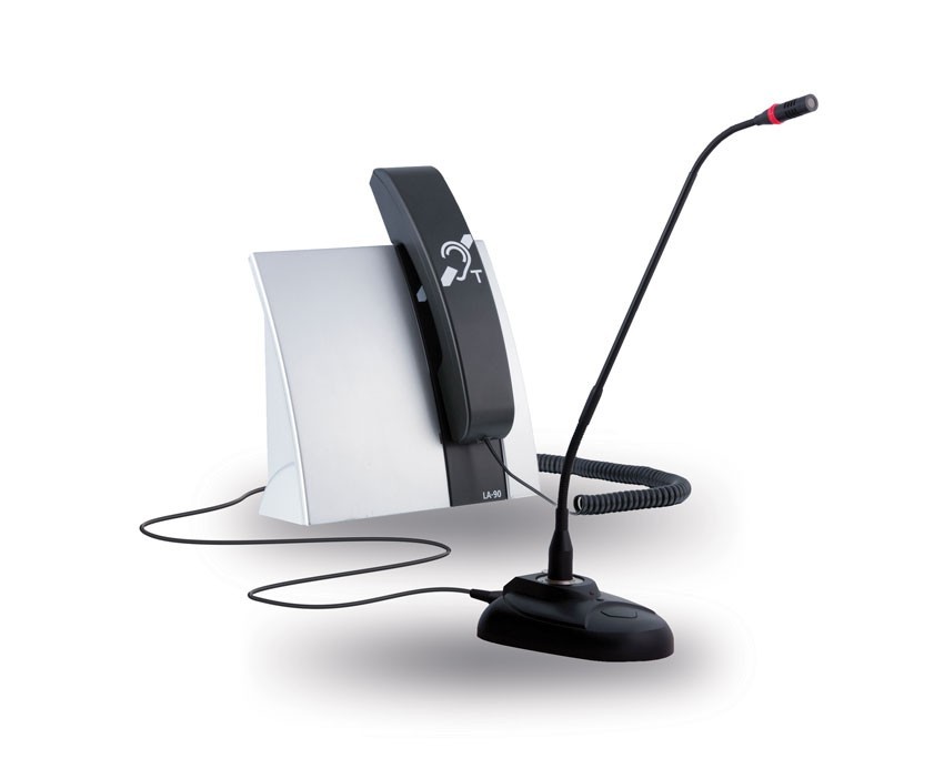 Ce kit est adapté aux lieux recevant du public (guichets, accueils, points de vente.) et permet de faciliter la communication avec les personnes déficientes auditives.Pour cela il suffit que la personne appareillée positionne ses prothèses sur la position "T" ou "MT" . La voix de l'interlocuteur est captée par le microphone intégré et retransmise dans la prothèse.Les personnes non appareillées utiliseront le combiné intégré.La captation de la voix s'effectue par le microphone de table qui permet d'éviter l'effet Larsen et une utilisation dans de mauvaises conditions acoustiques. La sensibilité du microphone de table peut être ajustée par le potentiomètre du LA-90. Le microphone de table est alimenté par le LA-90 et ne nécessite pas de piles. Le combiné et le microphone de table sont actifs dès que le LA-90 est mis en marche. Pour un utilisation fixe, le LA-90 peut être vissé sur le comptoir, au mur ou cadenassé par un antivol KensingtonTM.CaractéristiquesAlimentation : bloc secteur 100 - 240 VAC 50 _ 60Hz ou sur batterie intégré 12 VAutonomie : 6 heures sur batteriePorte du champ magnétique: 1 mètreMicrophone intégré : Pression acoustique jusqu'à 60 dB max.Entrée microphone externe Jack 3,5 mm, avec sensibilité d'entrée réglableSortie casque Jack 3,5 mm avec volume réglableCouleur :- LA-90 : gris métallisé avec insert noir- microphone : noir- combiné : noirRéglage et affichageBoutons marche et arrêt Réglage du niveau de l'entrée microphoneRéglage du volume de la sortie casqueSélection microphone interne / microphone externe / microphone interne et externeFixation possible par vissage sur le comptoir, par accrochage mural ou par antivol KensingtonTMMicrophone de table et combinéMicrophone de table directionnel avec col de cygne flexible alimenté par le LA-90Combiné ergonomique avec écouteur raccordé au LA-90 par un cordon spiraléDimensions :- LA-90 : 200 x 185 x 70 mm- microphone de table :- support : 140 x 150 x 20 mm- col de cygne : env. 370 cm- combiné : 215 x 45 x 45 mmPoids : - LA-90 : 635 g batterie incluse - microphone : 453 g - combiné : 155 g Ce que dit la loiArrêté du 8 décembre 2014 et Arrêté du 20 avril 2017 La boucle magnétique est obligatoire aux guichets d'accueil des établissements recevant du public (ERP) : remplissant une mission de service publicde 1ère et de 2ème catégoriesde 3ème et 4ème catégories neufs ou faisant l'objet d'aménagements. Ce dispositif n'est pas obligatoire pour les ERP existants de 3ème ou 4ème catégories. Il doit faire l'objet d'une signalisation à l'aide d'un pictogramme dédié. Notre article vous donne toutes les informations sur vos obligations concernant les boucles magnétiques dans votre ERP.Comment installer une boucle magnétique ?
