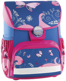 Description détailléeEn polyester, volume: 18 litres, couleur: rose/bleu, motif: papillon, dim.: (L)335 x (P)420 x (H)400 mm, kit composé de: cartable, étui scolaire de 25 pièces, trousse & sac de sport