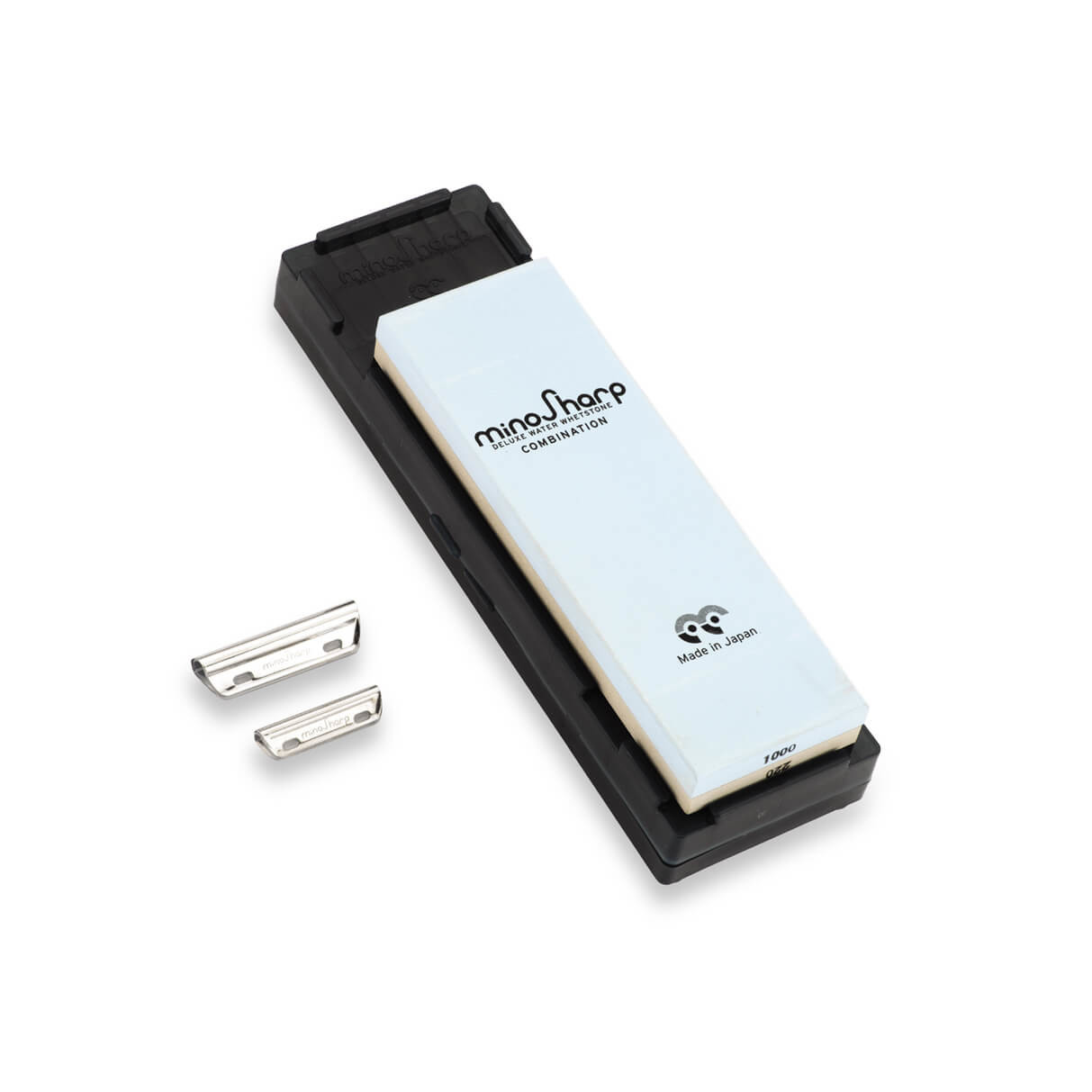 Kit pierre eau comprenant : 1 pierre réversible à 2 grains différents, 1 jeu de 2 guides d’affûtage petit modèle (pour couteaux jusqu'à 15 cm) et grand modèle (pour couteaux à partir de 15 cm) et une boîte de rangement qui fait également office de support de calage de la pierre pendant l’affûtage. Pierres spéciales pour couteaux Global. A tremper 10 minutes dans l’eau avant chaque utilisation.