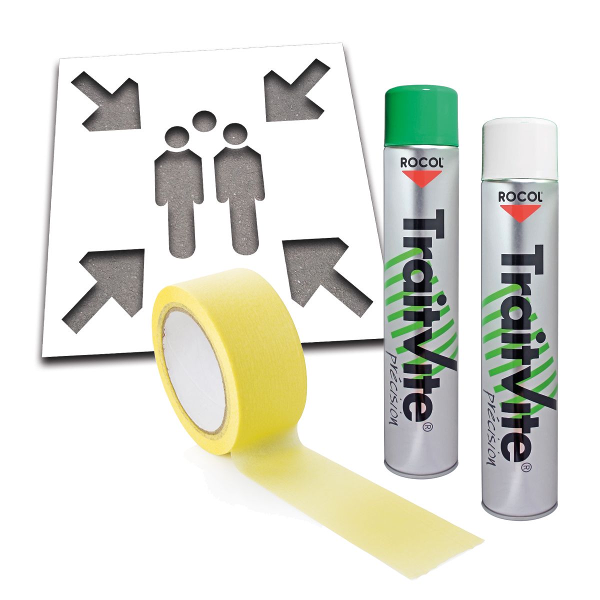 Le point de rassemblement est un emplacement où les personnes d'un bâtiment doivent se diriger et se rassembler lors de l'enclenchement d'une alarme dans les locaux et donc d'un danger imminent pour la vie d'autrui (incendie, explosion, fuite de gaz toxique, etc).La zone de rassemblement doit être impérativement à l'extérieur du bâtiment touché pour isoler les personnes de tout risque quelconque.Ce kit pochoir comprend : 1 pochoir "Point de rassemblement " en PVC Dimensions extérieures : 700 x 700 mm Dimensions du dessin : 600 x 600 mm Épaisseur : 0.2 mm 1 ruban de masquage pour préparation des sols en 48 mm x 50 m 1 aérosol couleur blanc 750 ml net 1 aérosol couleur vert 750 ml net Caractéristiques des aérosolsMatière : type ester époxy avec résine haut de gammeAspect du film : Satiné/BrillantSéchage : 20 ° C et 60 % d'hygrométrie : Au toucher : 30 minutes /Circulable : 24 heuresRésistance à l'abrasion : ExcellenteRésistance chimique : Très bonneEn PVC, le pochoir est réutilisable. Après chaque utilisation, préférez un lavage au solvant pour l'entretien du pochoir.