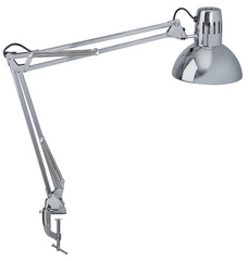 Description détailléeLivrée sans ampoule, bras et tête de lampe pivotables et inclinables, longueur du bras: 2x350 mm, écartement: 55 mm, diamètre tête de lampe: 170 mm, interrupteur sur le câble, fiche Euro, couleur argent