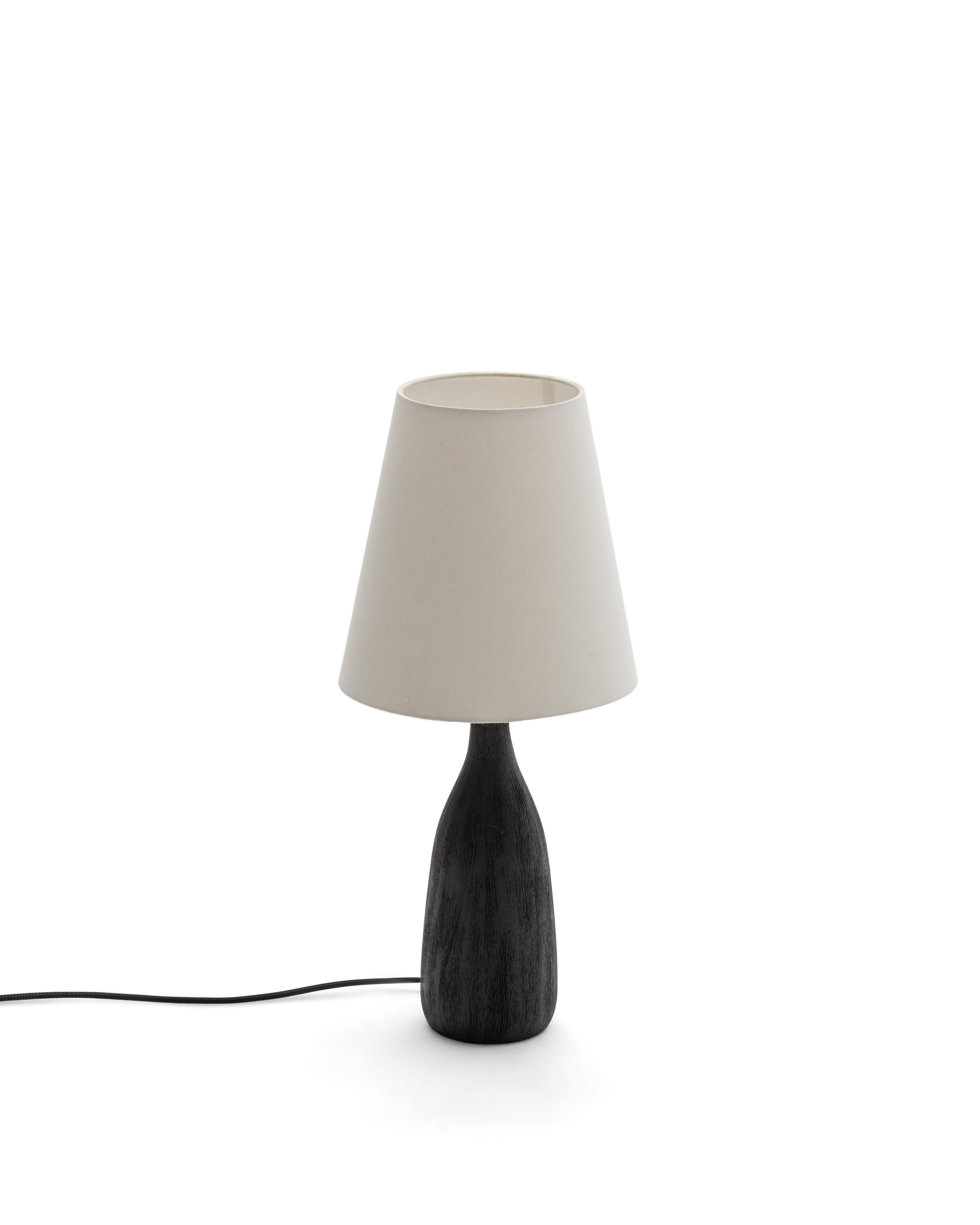 Luvia est une collection réalisée à partir de processus artisanaux qui combine la couleur sombre du pied en bois avec la lumière chaude générée par son abat-jour en tissu blanc.