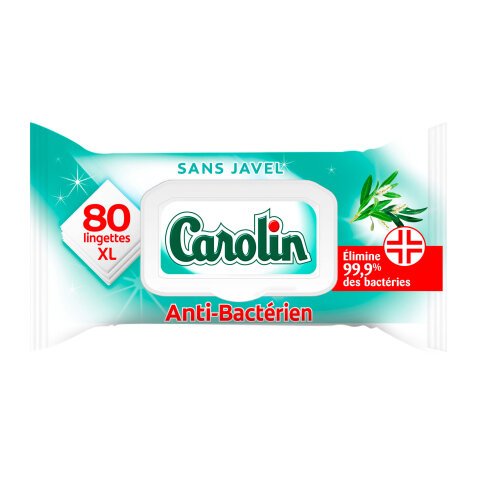 Vous visitez actuellement le page Lingettes nettoyantes extra-larges Carolin anti-bactérien - Arbre à thé - Paquet de 80 du rayon Désinfectants sans javel