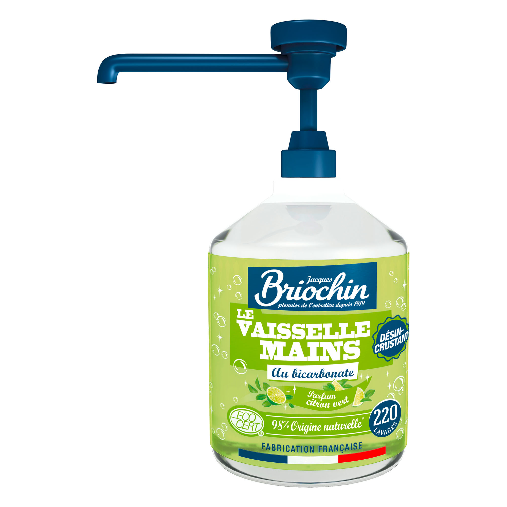 Le liquide vaisselle Briochin au bicarbonate élimine les saletés incrustées et les graisses cuites sur votre vaisselle.