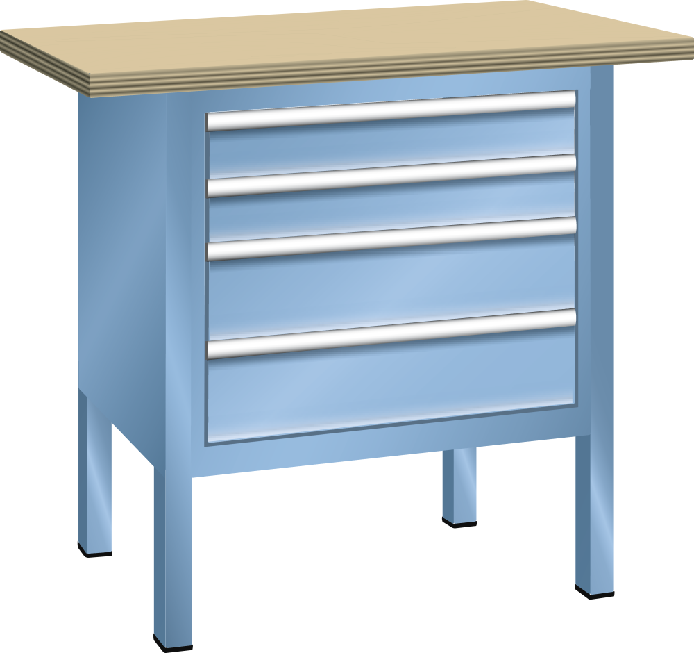 Matériau du plateau de travail : Hêtre massif épaisseur 5 cm ou bois multiplex épaisseur 4 cm.