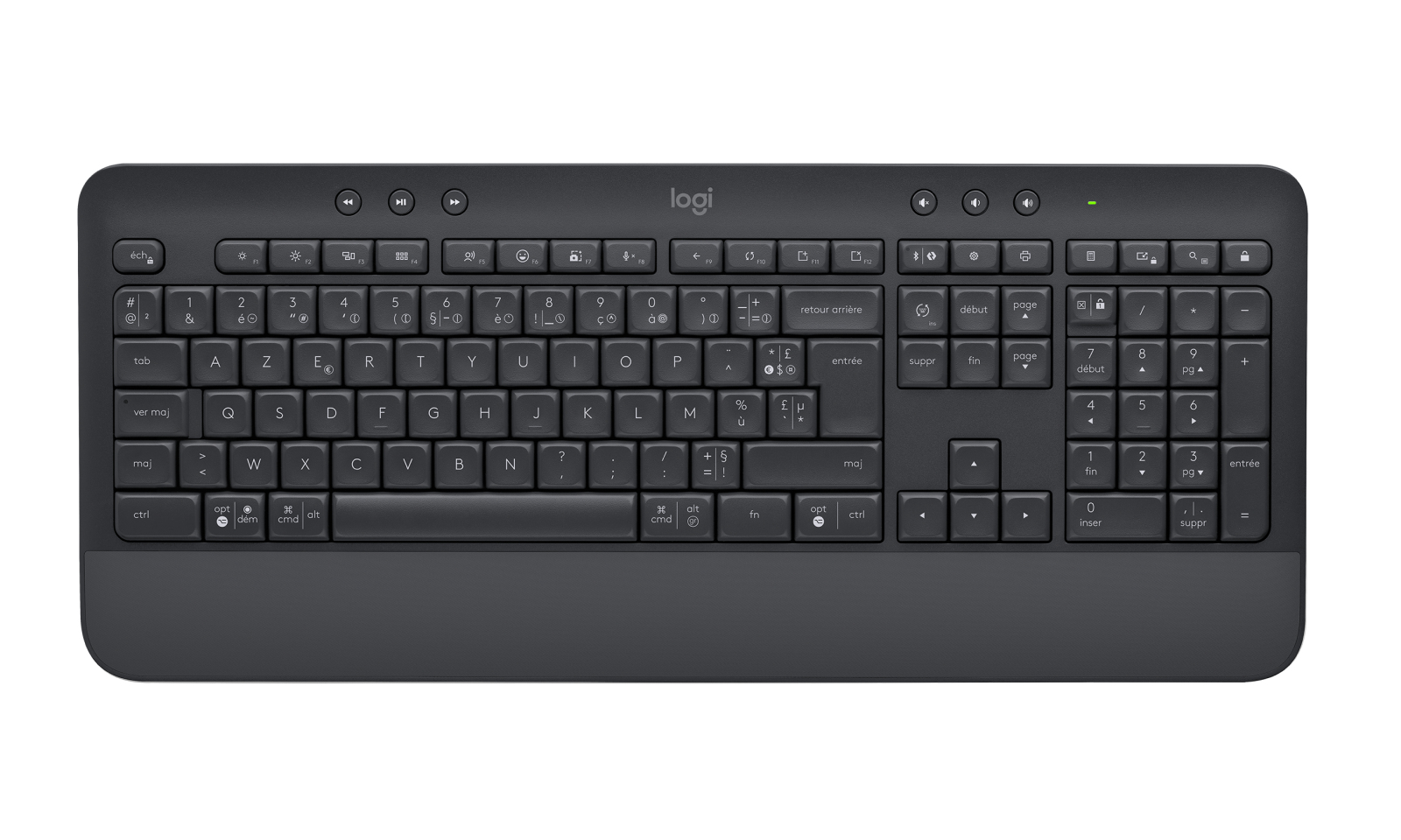 UNE FRAPPE CONFORTABLE POUR TRAVAILLER EFFICACEMENT Simplifiez vos journées et profitez du confort dont vous avez besoin pour de longues heures à votre bureau. Signature K650 est conçu avec des fonctionnalités pour assurer votre confort et votre productivité. Avec des raccourcis améliorés, un repose-poignets intégré et des touches rembourrées, le clavier Signature K650 est conçu pour répondre à tous vos besoins quotidiens tout en vous offrant des heures de confort.