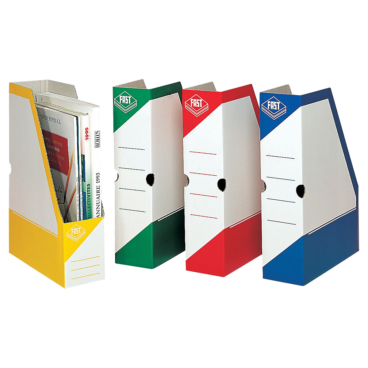 Le lot de 4 porte-revues Fast est disponible dans une variété de couleurs vives et attrayantes : bleu, rouge, jaune, et vert. Ces couleurs assorties ajouteront une touche de dynamisme à votre environnement de travail tout en vous aidant à catégoriser vos documents. Optez pour ce lot de 4 porte-revues Fast, l'alliance parfaite entre praticité et esthétisme.