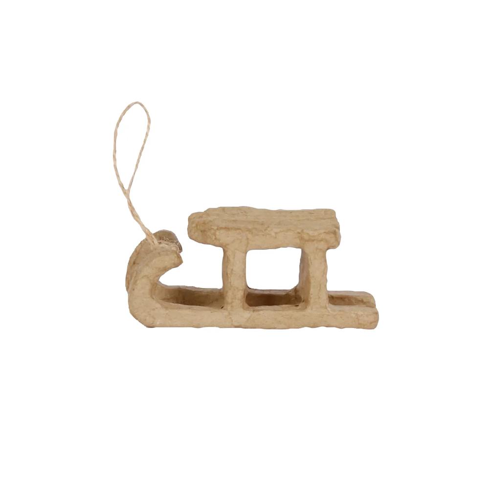 CARACTERISTIQUES : Cette luge à suspendre est fabriqué à la main à base de papier mâché de couleur brun. Chaque suspension est donc unique. Dimensions : 10x3,5x4 cm.