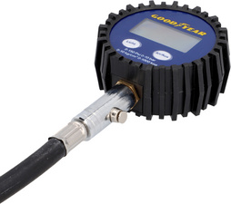 Description détailléeAffichage en bar, Psi, kpa et kg/cm2, plage de mesure: 0-10 bars avec une précision de 0,01 bar, pour pneus avec valve Schrader 8 mm, avec raccord rapide, longueur du flexible: 500 mm, incl. valve de décharge de pression