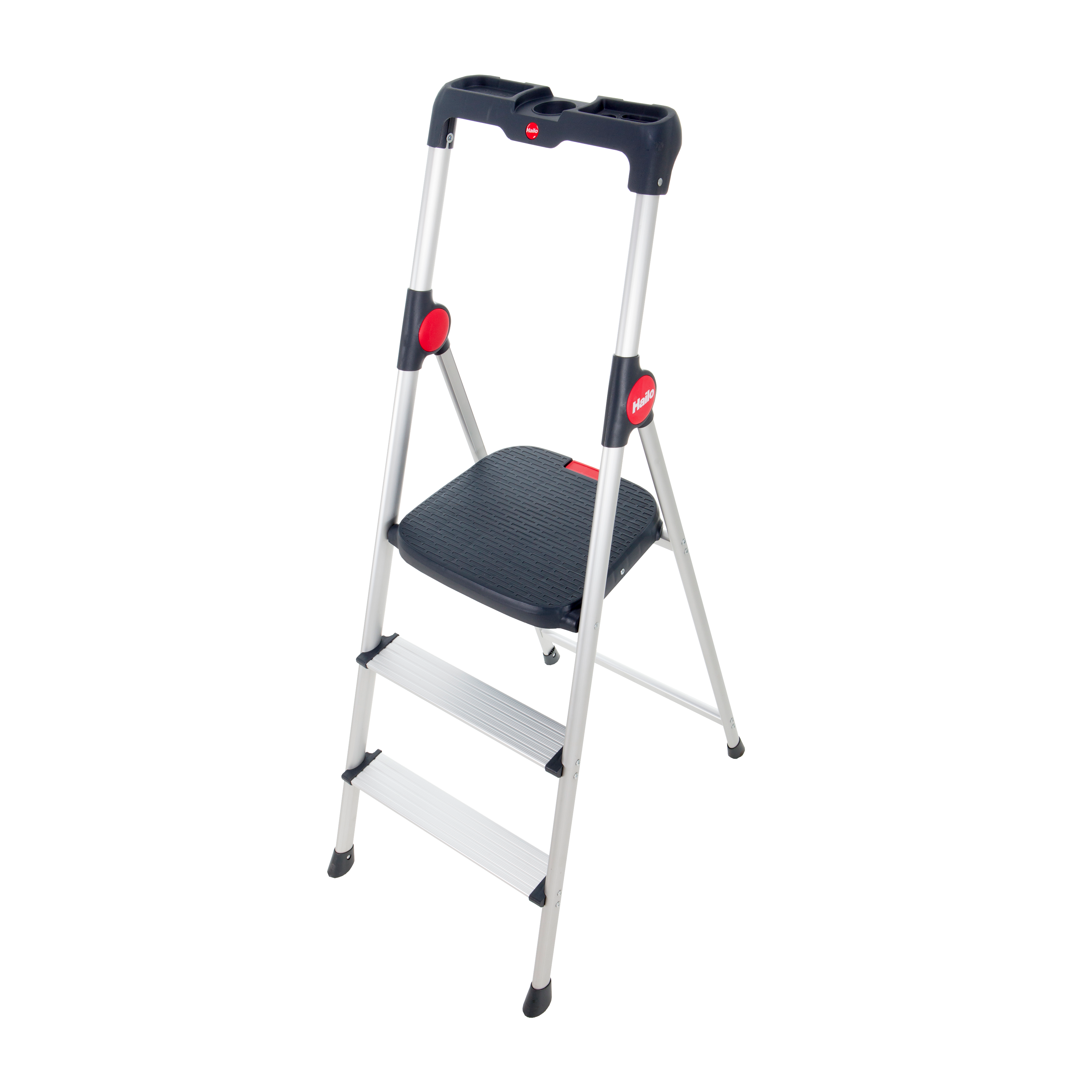 Description détailléeMarchepied ultra léger avec garde-corps haut. Structure et marches aluminium. Grande plateforme avec verrouillage automatique. Grand garde-corps haut de 60cm avec porte-outils. Embouts larges et antidérapants.