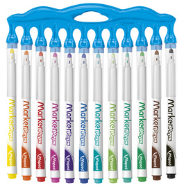 Largeur de tracé : 1,5 mm, pointe ronde, forme ergonomique, effaçable à sec, corps & bouchon dans la couleur du tracé, bouchon intégré à un socle incassable,