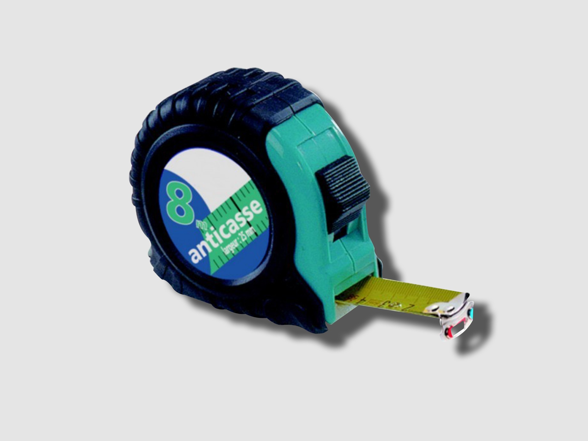 Mètre à ruban acier, d'une longueur de 8m avec corps bimatière ABS et enveloppe gomme anticasse.Crochet magnétique aimanté, clip ceinture et bouton de blocage.Grande largeur assurant le maintien rigide du ruban sur une grande longueur. Caractéristiques :Longueur : 8m x 25mm / 340g Equerre magnétique Boîtier ABS enveloppe élastomère Ruban acier jaune Clip ceinture Bouton de blocage