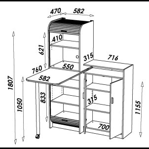 • Composé d'une colonne avec fermeture rideaux et d'une armoire porte battante