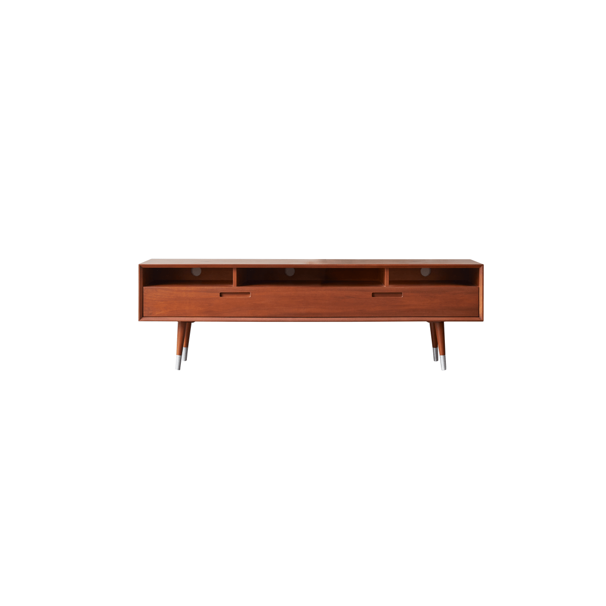 Découvrez ce meuble tv en teck teinté de la marque Tikamoon. Côté rangement, notre meuble se compose de 2 tiroirs (sur rails métal), ainsi qu'une niche. Vous serez séduits par son style vintage inspiré des année 50, caractérisé par ses pieds obliques en métal et bois. Son bois cérusé lui procure authenticité et sa teinte wengué apportera chaleur à votre pièce.