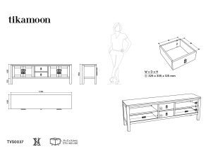 Le meuble TV Thaki Black en pin de la marque Tikamoon. Atmosphère exotique et relaxante au salon grâce aux lignes singulières et à la teinte noire très sobre de ce beau meuble. Choisir un meuble TV en pin massif FSC®, c'est s'offrir une pièce exceptionnelle. Il sera parfait pour habiller votre pièce et apportera à votre intérieur un esprit zen. Grâce à ses multiples rangements, vous pourrez optimiser l'organisation de votre salon. 2 x 2 portes battantes, ouvrant chacune sur 2 espaces de rangement avec étagère amovible+ 2 tiroirs (sur glissière bois). Le meuble est percé à l'arrière pour le passage des câbles.