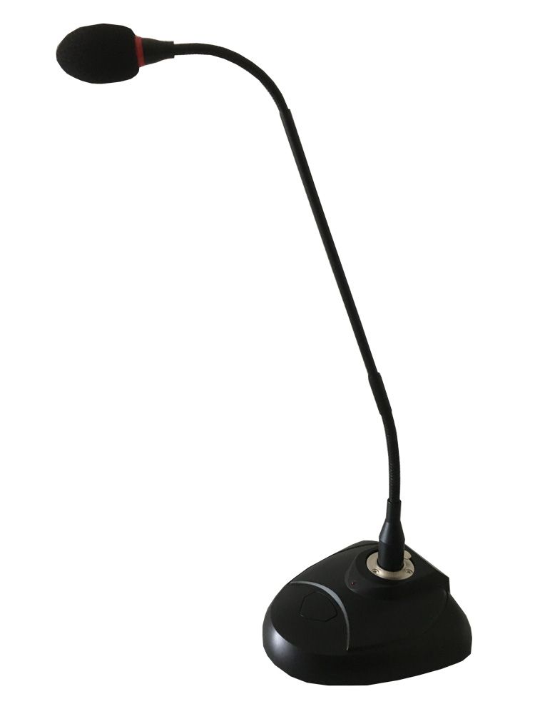 Microphone de table avec col de cygne conçu pour une utilisation dans les ERP (annonces micro) avec des boucles magnétiques ou des systèmes infrarouges. Il sera donc utile pour les salles de conférences, accueils d'ERP, musées, etc...Caractéristiques : Dimensions de la base: Longueur : 145 mmLargeur : 135 mmHauteur : 60 mmDimensions du col de cygne : 450 mmCouleur : noirpoids : 1,5 kgDirectivité : cardioïdeImpédance : 600 ohmRapport signal/bruit : >40 dBSensibilité : 3.9 mV/Pa à 1 kHzTempérature d'utilisation : 0-40°CAlim. électrique : fantôme. Un emplacement existe pour des piles sous la base. Les piles ne sont pas fourniesBande passante audio : 100 Hz - 16 kHzConnecteur : XRL mâleLivré avec : 1 base entrée XLR mâle1 câble XLR femelle - mini jack 3.5 mm mono1 éponge de protection pour micro1 mode d'emploi1 coupon de garantieMise en place du microphone :Pour que le microphone soit opérationnel, il suffit d'enficher celui-ci sur l'amplificateur LA-90 sortie micro, après avoir intégré les piles (non fournies) sous la base)