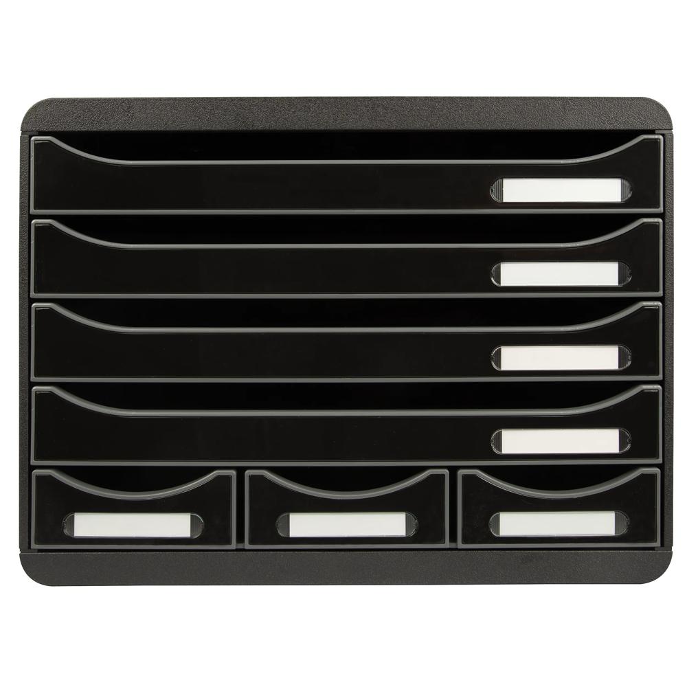 Optimisez votre espace de travail avec le Module de classement Storebox 7 tiroirs Glossy - Noir brillant de la marque Exacompta. Ce module polyvalent vous permet de ranger et organiser efficacement vos documents, pochettes à élastiques au format A4+, petits accessoires, stylos et notes. Son format à l'italienne est spécialement conçu pour s'adapter aux espaces peu profonds de certains bureaux, armoires ou étagères, rendant ce module idéal pour un usage bureau, home office ou scolaire.