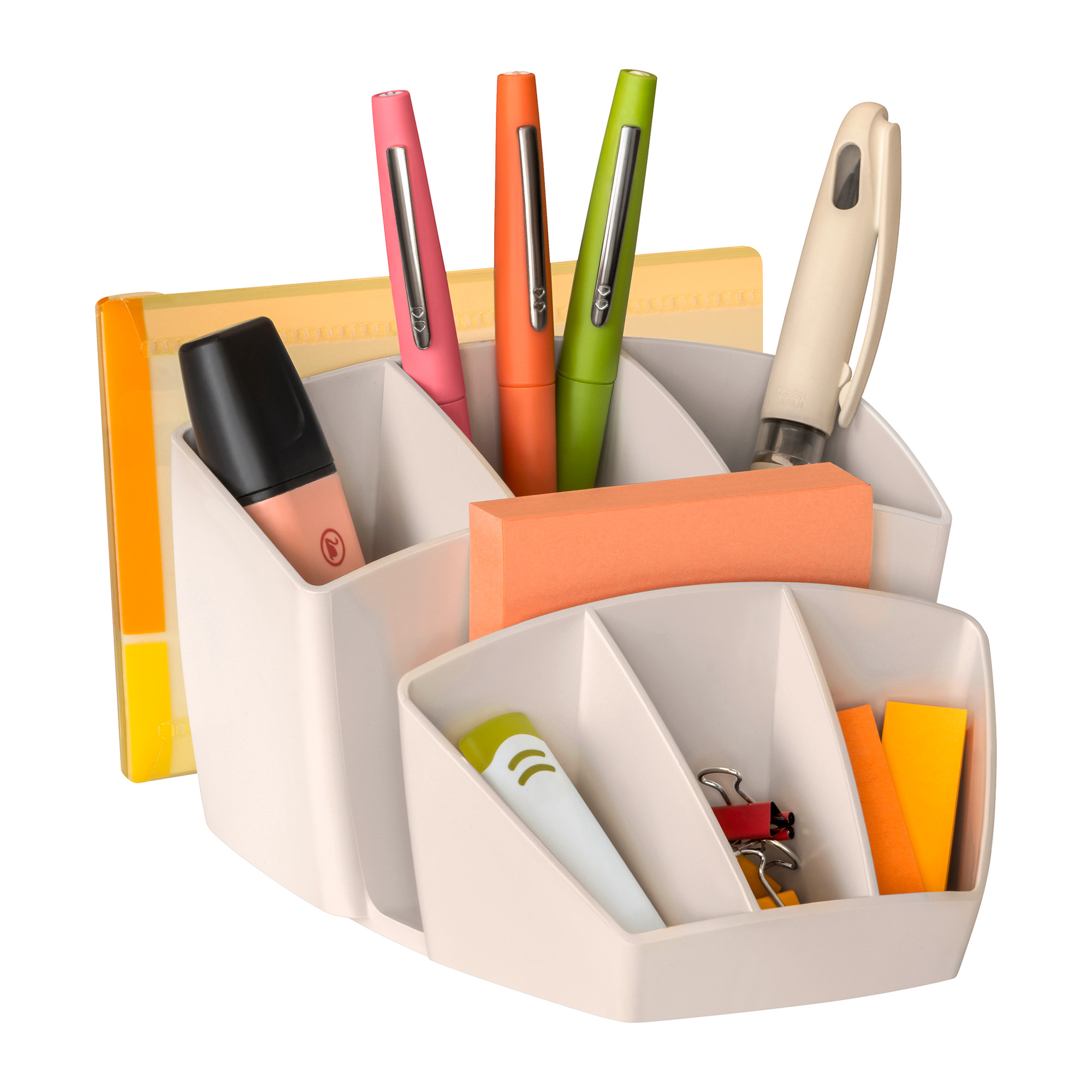 Description détailléeMultipot à crayons généreux, compact et élégant,Permet de rassembler et ranger tous vos accessoires de bureau.Capacité 8 compartiments : 40 stylos, 5 surligneurs, 3 cases « vrac » et 2 compartiments latéraux pour smartphone, bloc de post-it ..Patins antidérapants inclus.