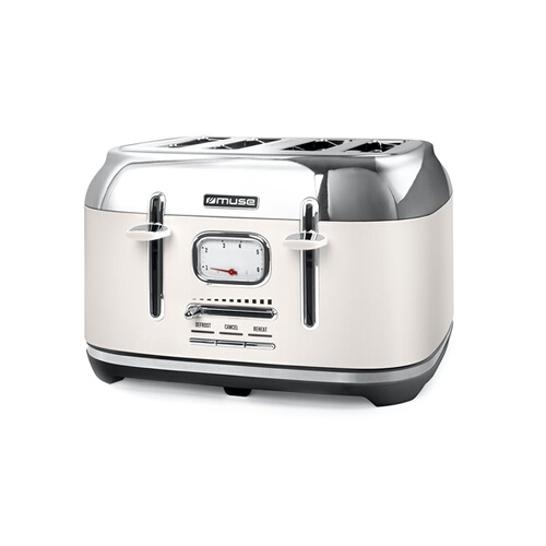 Description détailléeGrille-pain 4 fentes, 6 niveaux de brunissement - Cuisson double face, Fonctions annulation, décongélation, réchauffage, Arrêt automatique - Touche de remontée