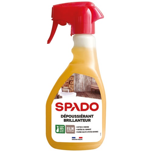 Le nettoyant dépoussiérant brillanteur bois de 500 mL en pulvérisateur de la marque SPADO a été conçu pour l'entretien de vos meubles en bois. Sa formule à base d'huile d'orange pure sans silicone élimine de manière efficace tous types de traces, de saletés mais également les rayures superficielles tout en laissant un agréable parfum d'orange. Le nettoyant permet également de faire briller le bois sans laisser de trace. Pour une finition impeccable, ce produit dépose un léger film protecteur qui agit contre l'humidité et prévient la réapparition de la poussière, des traces d'eau et de doigts. Usage : nettoie, protège et ravive les meubles en bois.