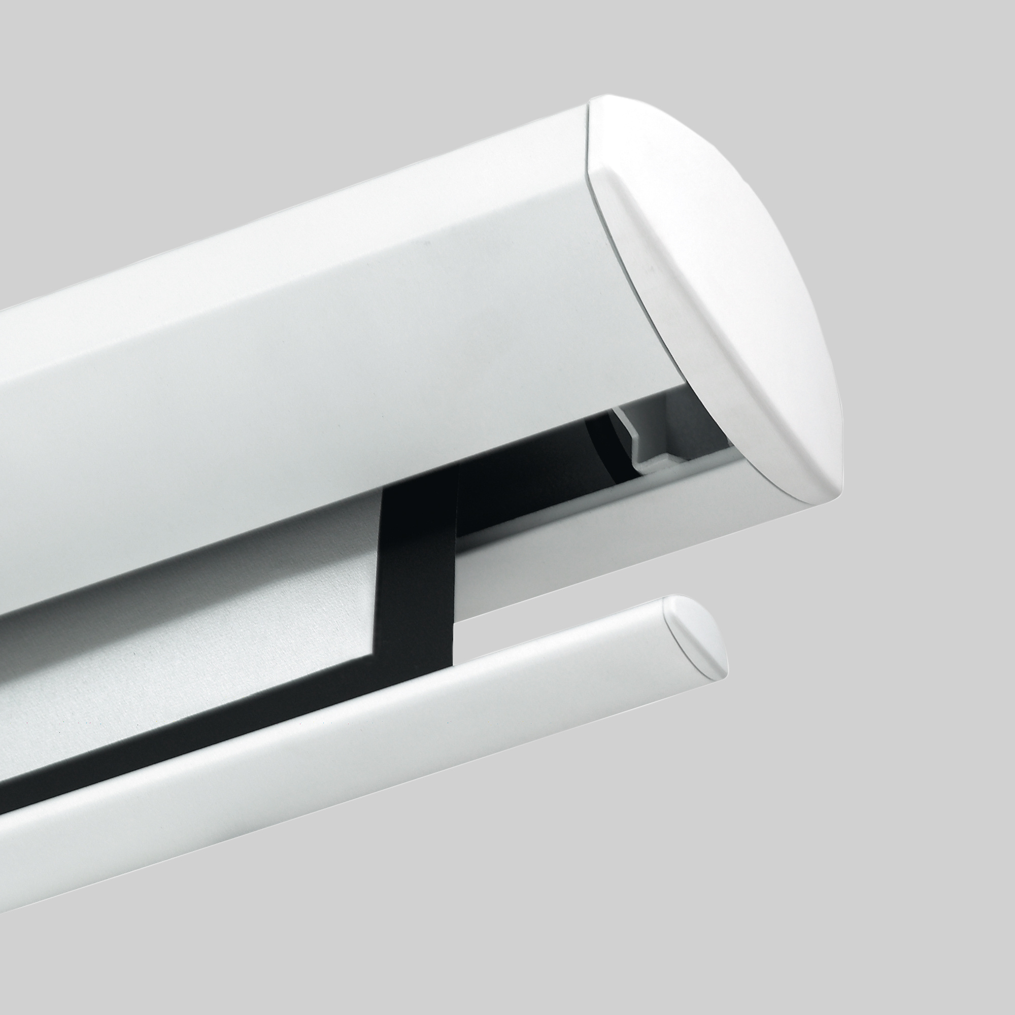 Le HCM4 filaire est équipé d’un carter en profilé d’aluminium laqué blanc. Sa surface de projection occultante est pourvue d’un cadrage noir et d’un drop selon le format.