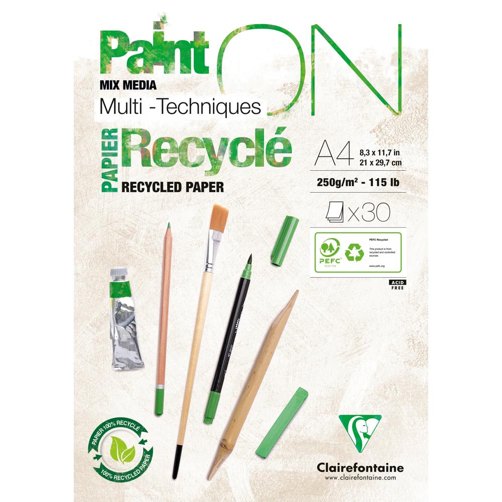 Optez pour le PaintON Recyclé bloc collé 30F A4 250g et donnez vie à vos créations avec un papier adapté à vos besoins, tout en contribuant à la protection de notre planète.