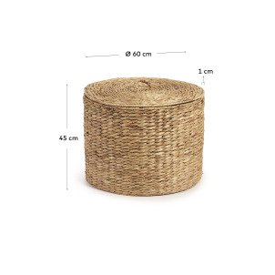 Pour ranger vos coussins et plaids à côté du canapé ou pour votre coin buanderie.- Panier à linge avec anses et couvercle fait en jacinthe d'eau et tressé à la main.