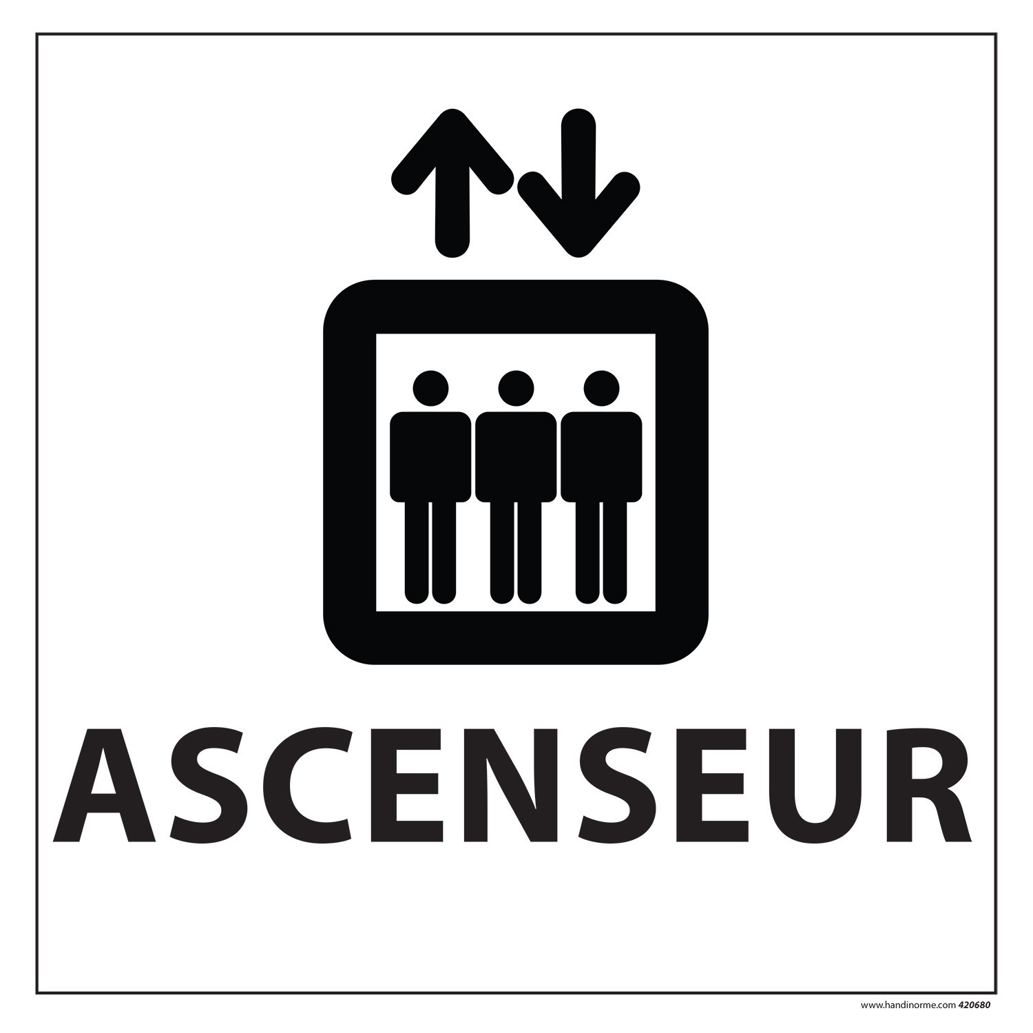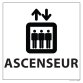Le panneau met en avant un texte descriptif « Ascenseur » et un pictogramme représentant une ascenseur, tous deux en couleur noire sur un fond blanc. Grâce à son design attractif et compréhensible, il permet de signaler efficacement la présence d'un ascenseur aux usagers.