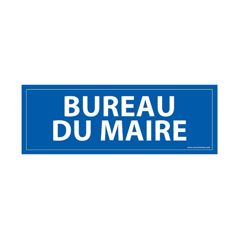 Avec son fond bleu et son texte ""Bureau du maire"" en blanc, cette signalétique se distingue par son aspect standard et compréhensible, facilitant la tâche aux usagers pour identifier le bureau du maire. Ses dimensions de 210 x 75 mm permettent une lecture aisée, même à distance.