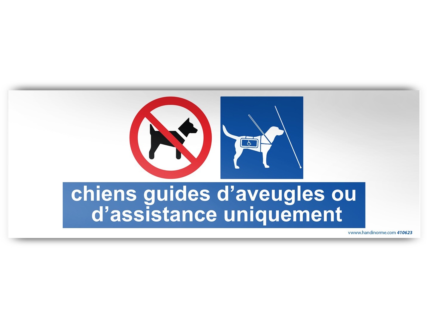 Optez pour le Panneau D'information : Chiens Guides D'aveugle Ou D'assistance Uniquement, Modèle 1, une solution efficace pour informer vos clients et visiteurs de la présence autorisée de chiens guides d'aveugles ou d'assistance dans vos établissements. Conçu et fabriqué en France, ce panneau garantit une qualité irréprochable et une durabilité optimale.