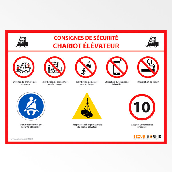 Faites le choix de la sécurité au travail avec notre Panneau Consignes De Sécurité Chariot Élévateur et assurez-vous que vos employés connaissent et respectent les règles indispensables pour prévenir les accidents.