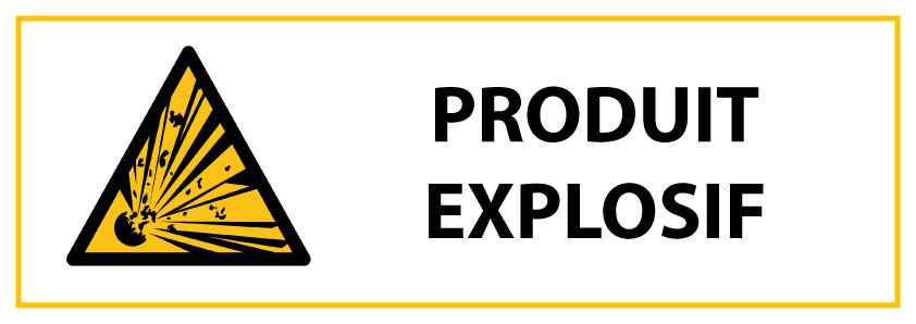 Le pictogramme ISO 7010 W002 est accompagné du texte ""PRODUIT EXPLOSIF"", renforçant la compréhension du message. Ce panneau est disponible en deux dimensions : 297 x 105 mm et 450 x 150 mm. Il convient pour une utilisation en intérieur pour le vinyle, et en intérieur comme en extérieur pour le PVC.